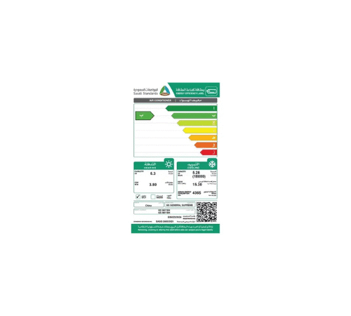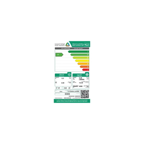 المواصفات الفولت / هرتز : 187 ~ 276 (220v) اللون: أبيض السعة : 18000 وحدة...